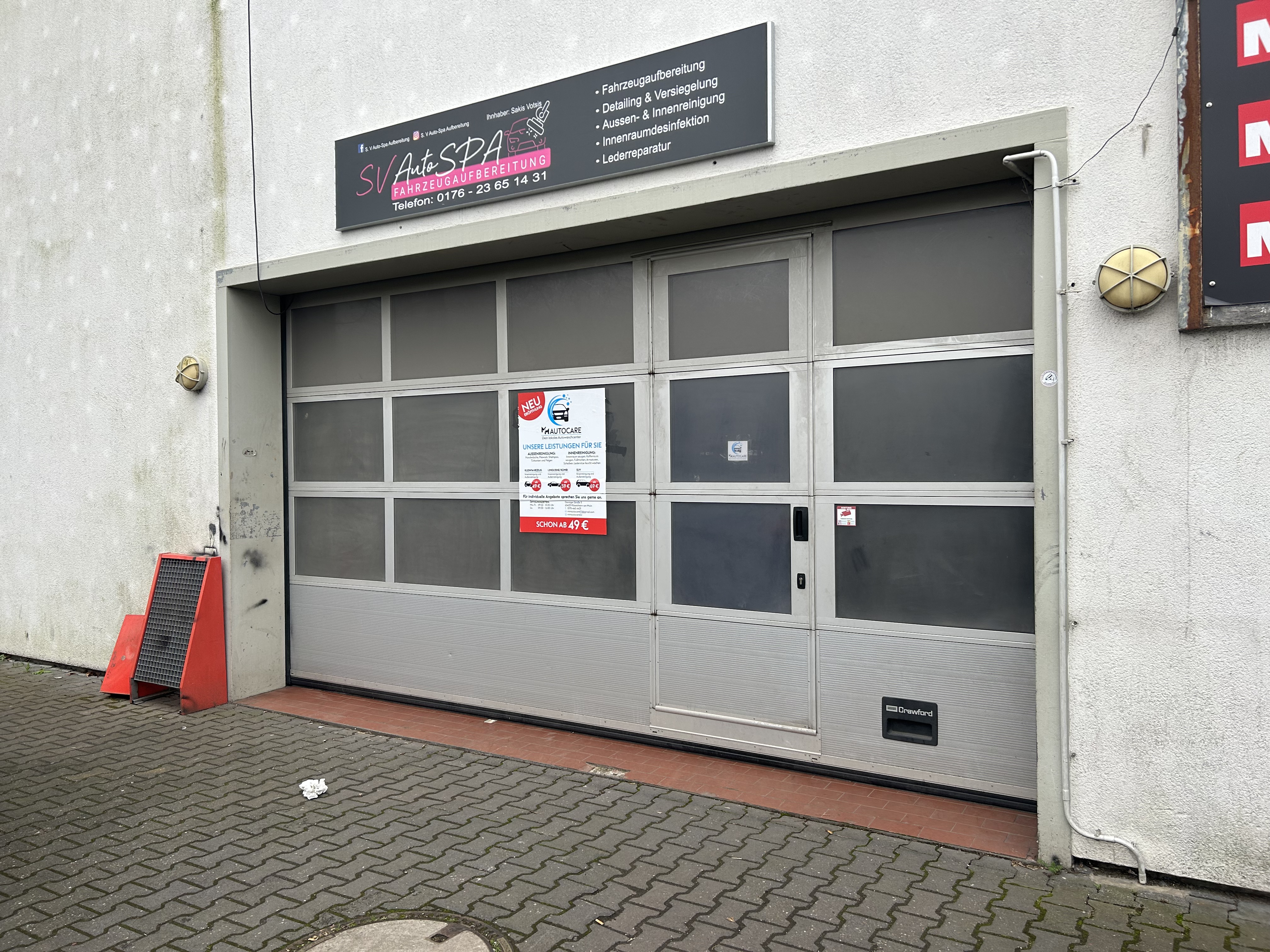 Dieser Kleinstarbeitsplatz bietet eine interessante Möglichkeit für z. Bsp. Kfz-Aufbereiter und Smart Repair Firmen, ihr Gewerbe zu entwickeln. Etwa 100qm, teilweise hinter separat verschließarem Rolltor, stehen zur Verfügung.