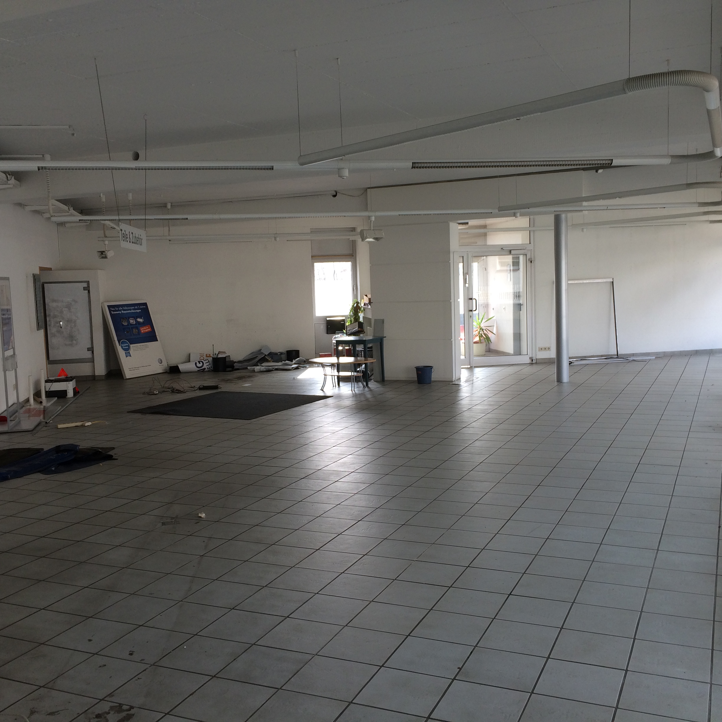 Eine weitere Ausstellungsfläche mit großen Schaufenstern und etwa 130qm befindet sich im EG rechts. Der Zugang erfolgt über den Hof. Im EG befinden sich auch WC Anlagen sowie ein Wasseranschluss für einen Kaffeeautomaten. Zu dieser Einheit gehören Büros im 1.OG mit etwa 60 qm, teilweise klimatisiert. Die Fläche eignet sich z. Bsp. für kleinere Präsentation in Verbindung mit Büros.